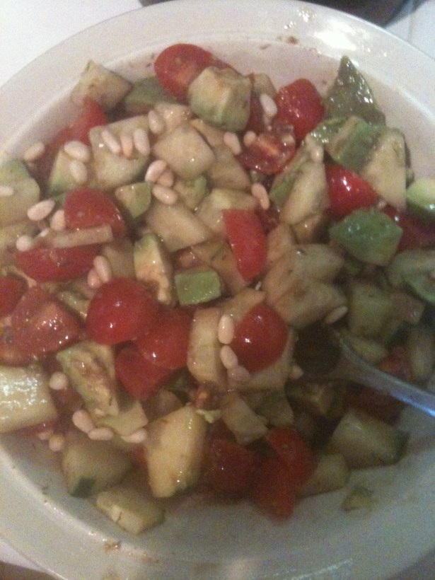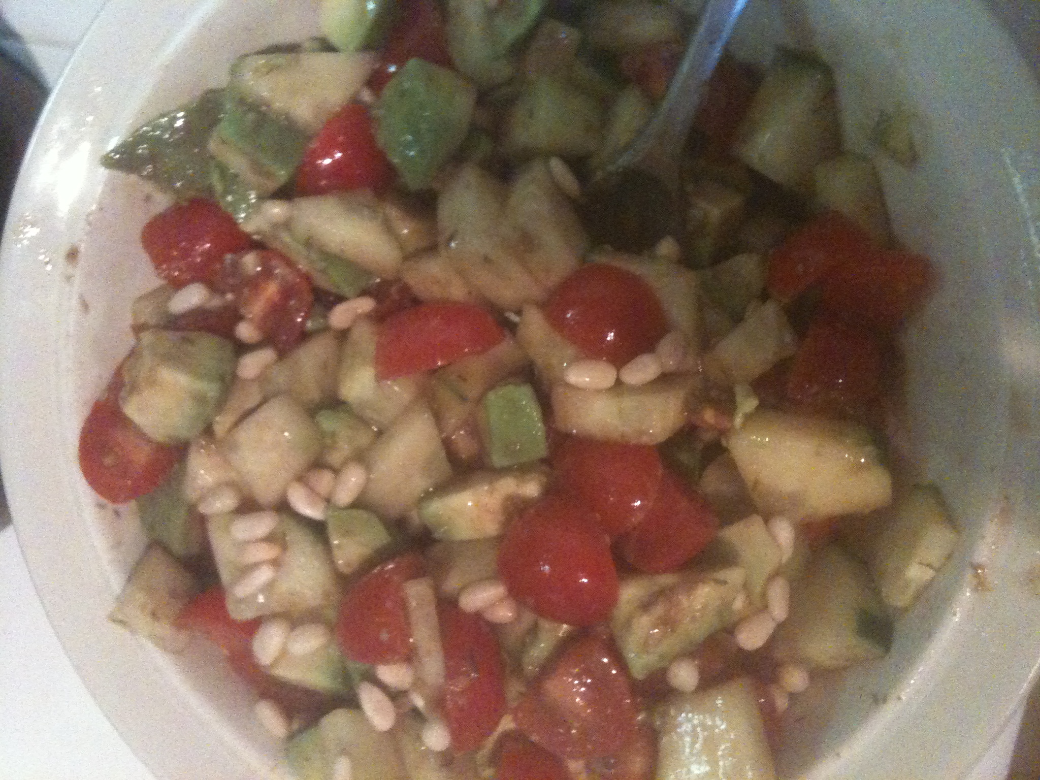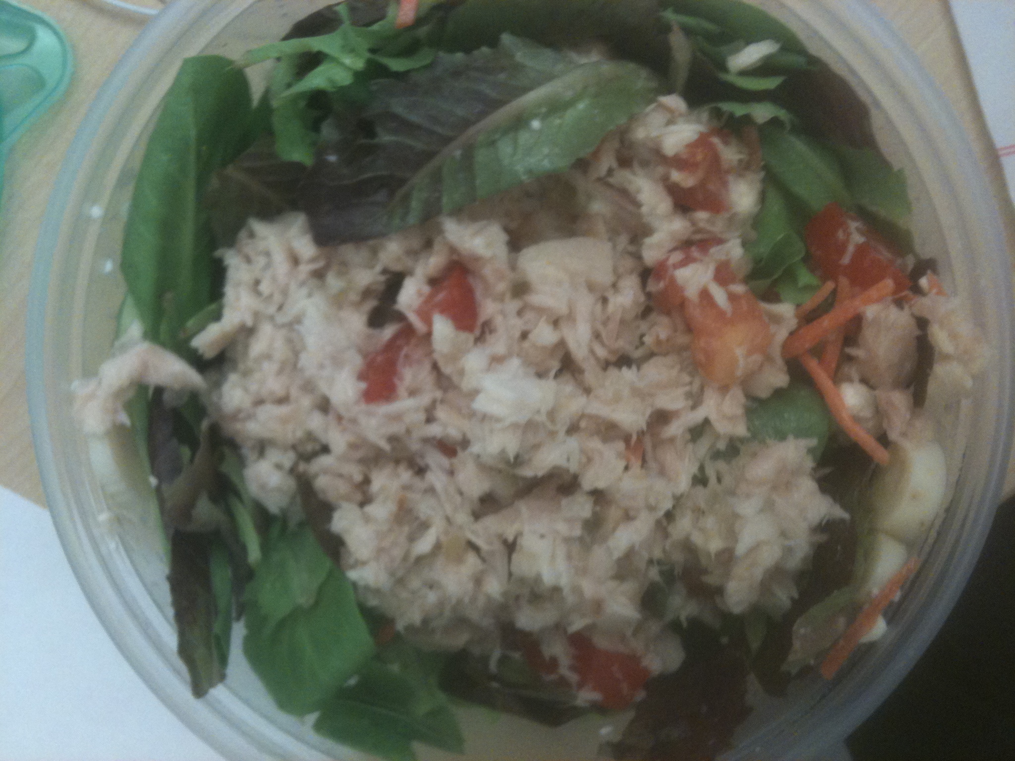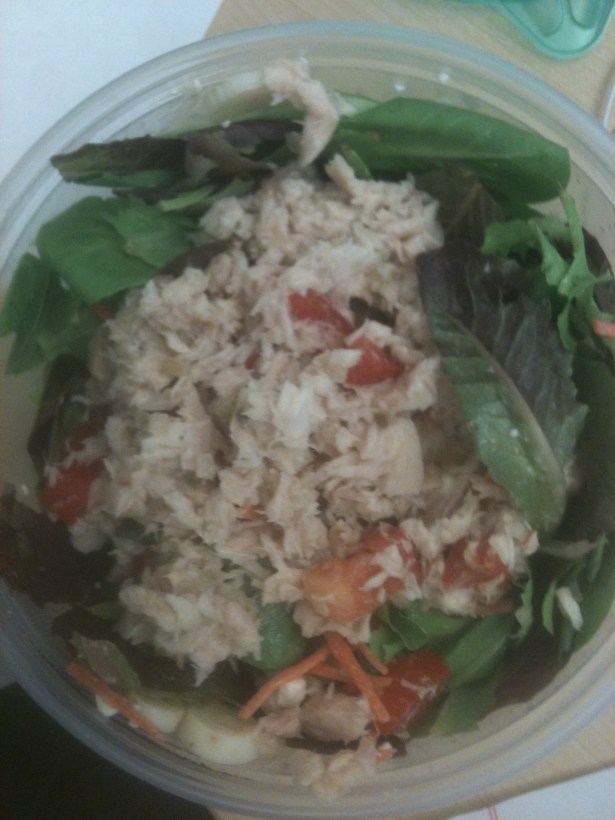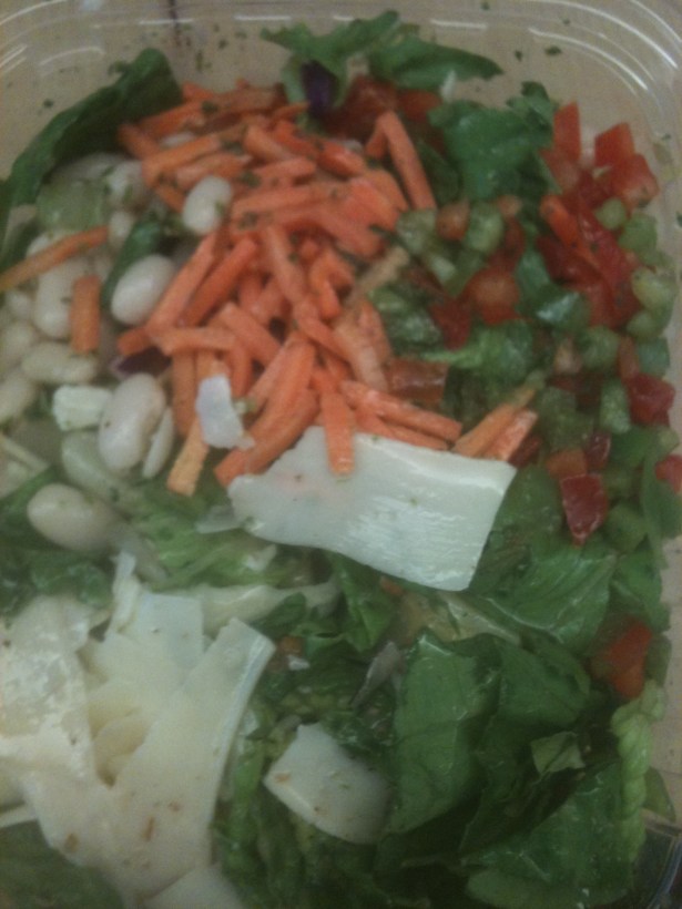 This recipe was actually given to me by a friend (thanks JD)! I made this for lunch because I had plans for a company dinner in the evening. It included mixed greens, pears (I used canned), goat cheese, sliced almonds, pea tendrils, and my favorite fat free balsamic vinaigrette (Trader Joe’s). She actually has a recipe for a homemade dressing (vinegar, olive oil, honey, paprika, salt, and pepper), but I didn’t have enough time to put it together before I left for the day. Either way it was delicious!
