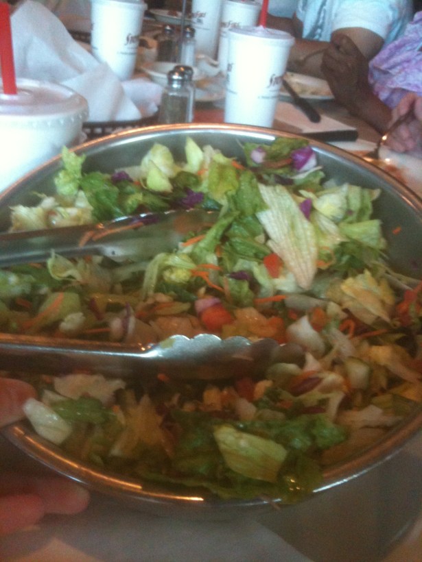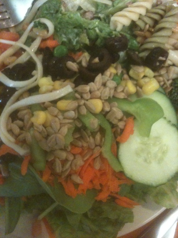 With all this salad eating I had a craving for the ‘original’ salad bar – soupplantation. I usually try and fill up on the greens so I’m too full to try too much of the other stuff. But I did share some pasta primavera and a baked potato with the baby 🙂