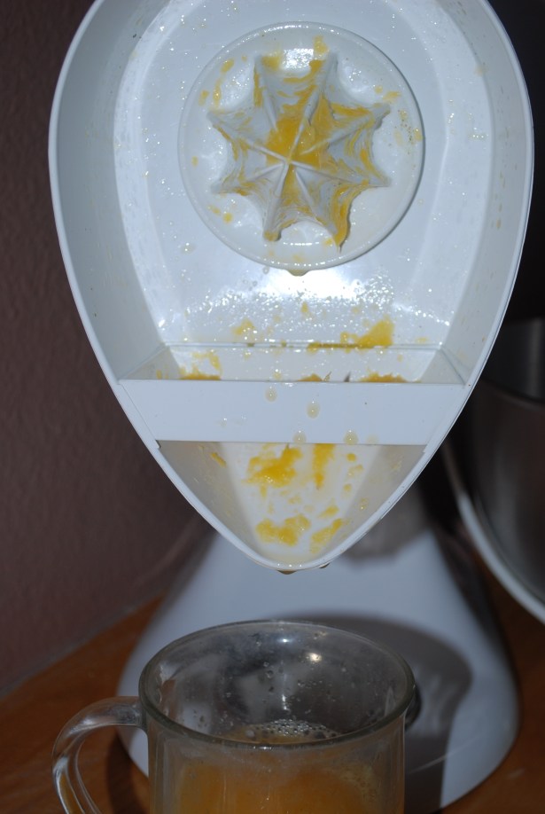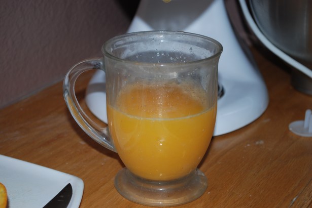 Step 1: Make fresh OJ with Navel Oranges (purchased from our local farmers market). We use our attachment for the kitchenaid mixer. (You can purchase from the store but the fresh squeezed tastes so much better!)