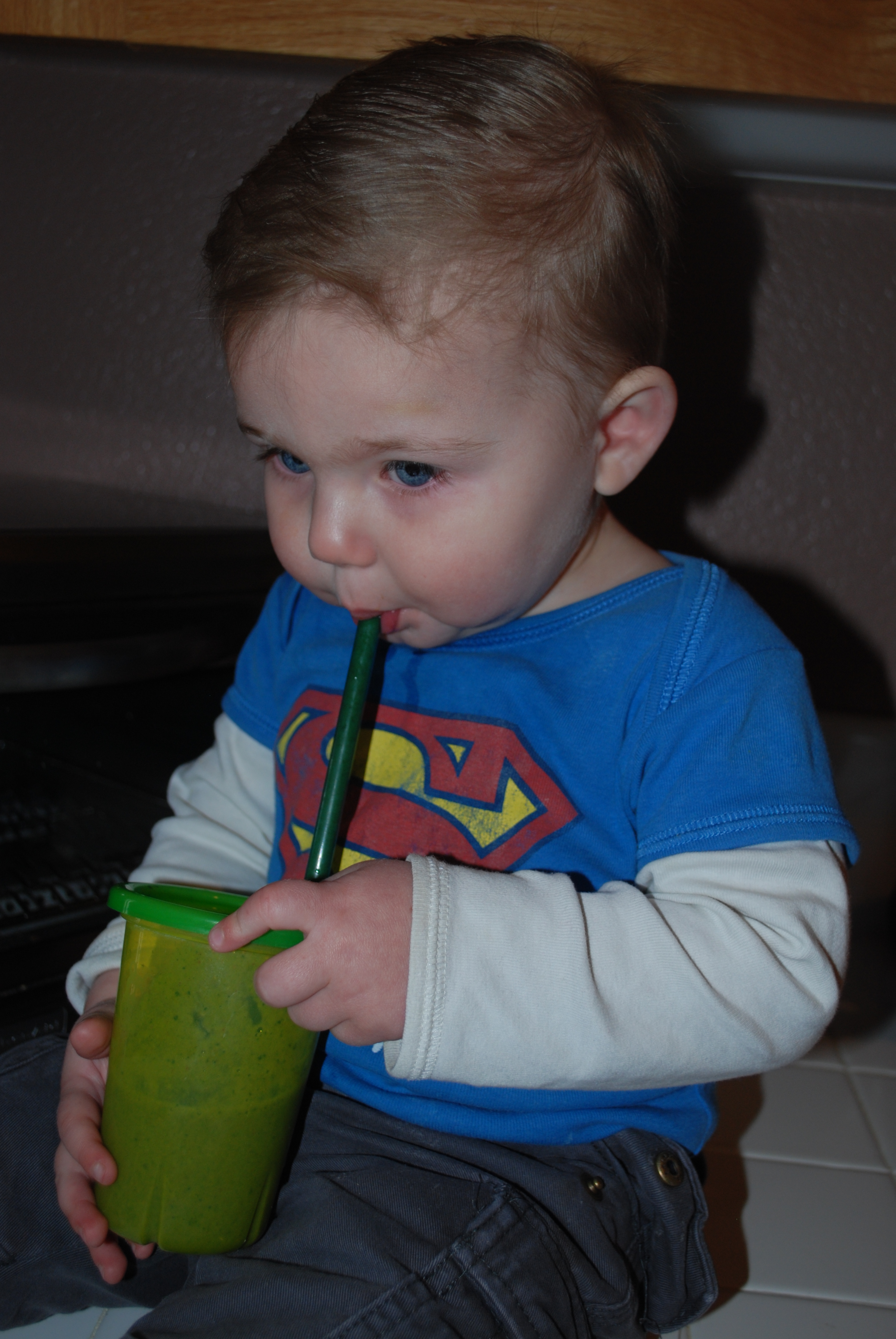 I don’t know about you, but I can’t tell you how many times I’ve gone out to eat and thought, ‘I could totally make this at home!’ Well my husband and I are always looking for new, tasty ways to get our greens into our diets without having to spend all day chopping vegetables. I love salads but sometimes I wish I had a chef for all the work it takes to prep them. Anyways… we were at whole foods new smoothie bar and decided to order the ‘Farmers Garden Smoothie’ which includes – fresh squeezed OJ, fresh spinach, fresh kale, 1 banana, and strawberries…. it was delicious! You couldn’t even taste the greens and my son practically drank my entire smoothie. I happen to think that the OJ is a great balance for all those fresh greens. So of course I decided to make it at home… Now I don’t own a fancy blender, just a basic one, so rest assured, you too can make this at home and you will LOVE it!
